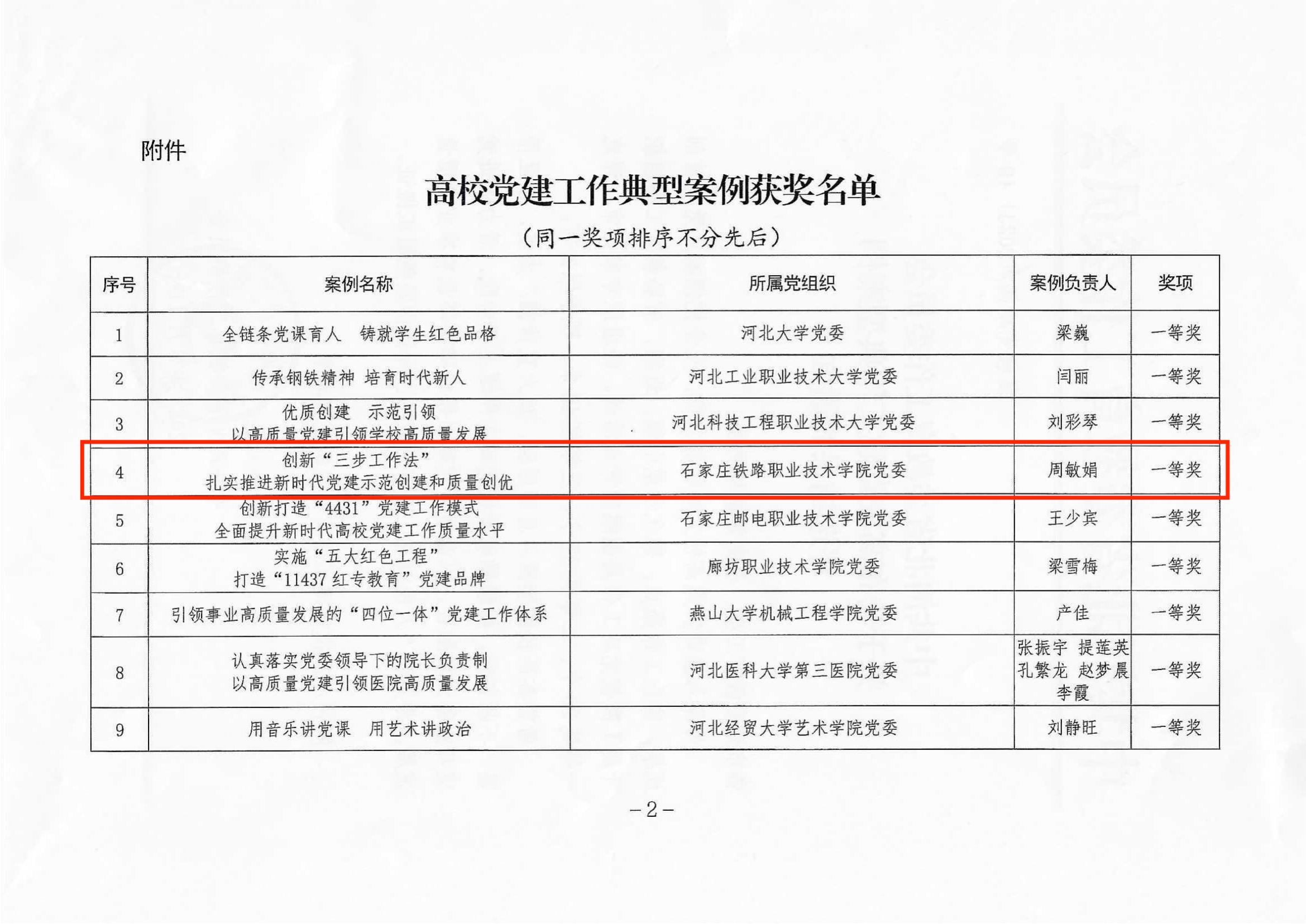 近年來,石家莊鐵路職業(yè)技術(shù)學(xué)院黨委認(rèn)真踐行新時代黨的建設(shè)總要求,堅持“政治統(tǒng)領(lǐng)、重心下移、全面創(chuàng)優(yōu)”工作思路,不斷健全完善高校黨的組織體系、制度體系和工作機(jī)制,探索創(chuàng)新“體系筑基”“逐級選育”“品牌塑造”的“三步工作法”,推動黨建與中心工作深度融合,走出了一條以黨建促特色,以創(chuàng)新求發(fā)展的特色黨建之路。