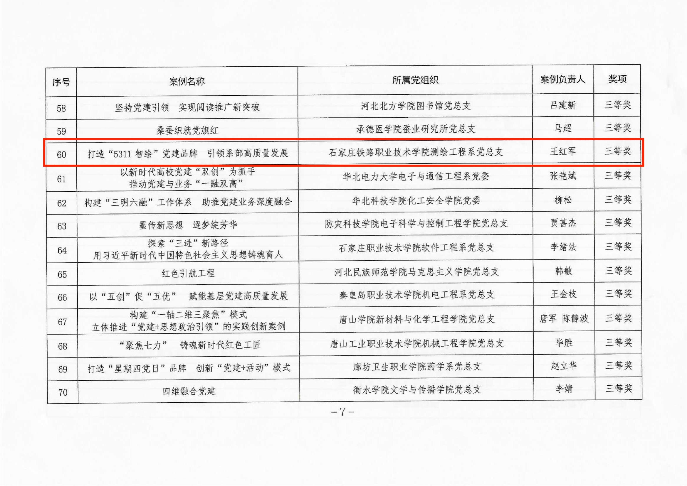 近日,省委教育工委組織開展了高校黨建工作典型案例評選活動,學(xué)院報送的案例《創(chuàng)新“三步工作法” 扎實推進(jìn)新時代黨建示范創(chuàng)建和質(zhì)量創(chuàng)優(yōu)》榮獲一等獎,《打造“5311智繪”黨建品牌 引領(lǐng)系部高質(zhì)量發(fā)展》榮獲三等獎。