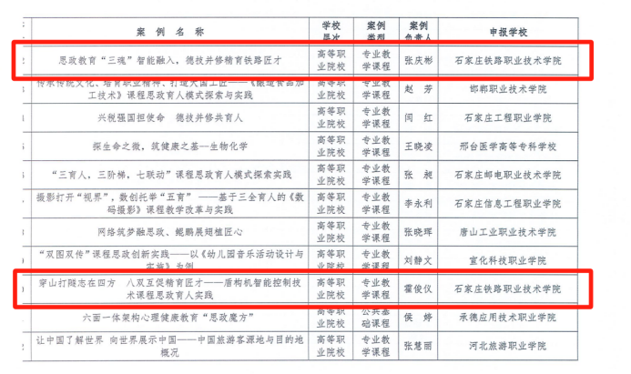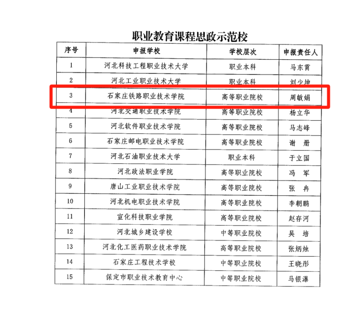石家莊鐵路職業(yè)技術(shù)學(xué)院入選河北省職業(yè)教育課程思政示范校